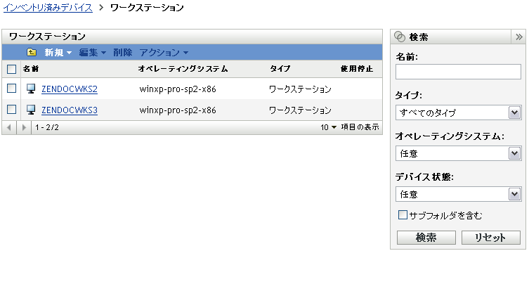 図 6-2 [インベントリ済みデバイス]ページ>ワークステーションフォルダ