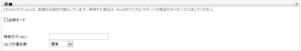 警告:これらのオプションは高度な診断用です。使用する場合は、Novellサポート担当者の指示に従ってください。