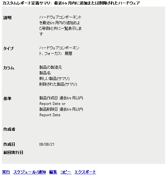 最近6ヶ月内に追加または削除されたハードウェア: 管理ゾーン内のハードウェアコンポーネントをリストし、最近6ヶ月内に追加または削除された数を表示します。