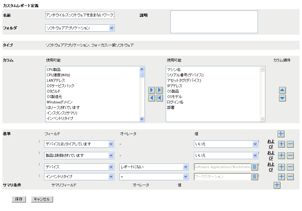 [インベントリカスタムレポート]パネルで、の順にクリックします。