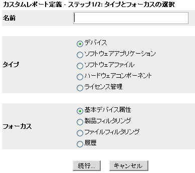 [インベントリカスタムレポート]パネルで次のいずれか1つをクリックします。