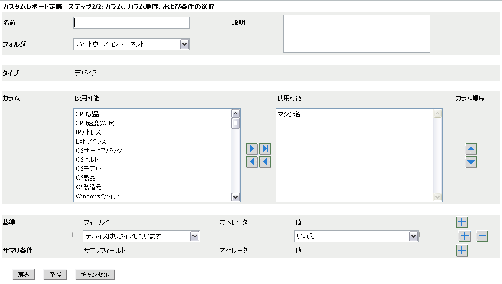 タイプ: このフィールドは表示専用です。選択したレポートタイプが表示されます。