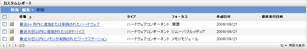 ZENworksコントロールセンターを使用すると、管理ゾーン内のインベントリを分析するために使用できるカスタムレポートを作成して実行できます。詳細は次を参照してください。