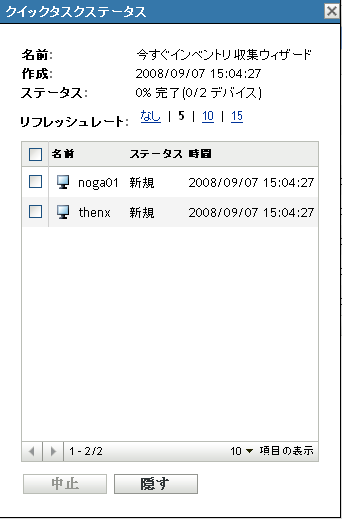 [クイックタスクステータス]ダイアログボックスが表示され、展開の進行状況が示されます。完了すると、コレクションデータフォームがデバイスの画面に表示されます。展開を中止するには、ワークステーションを選択して[]をクリックします。