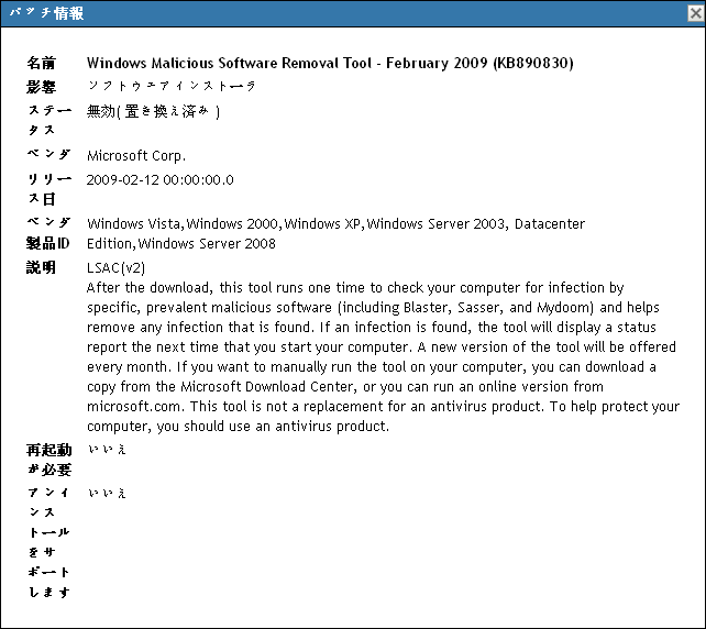 ソフトウェア配布 例:Microsoft Windows悪意のあるソフトウェアの削除ツール(ウィルス駆除) |