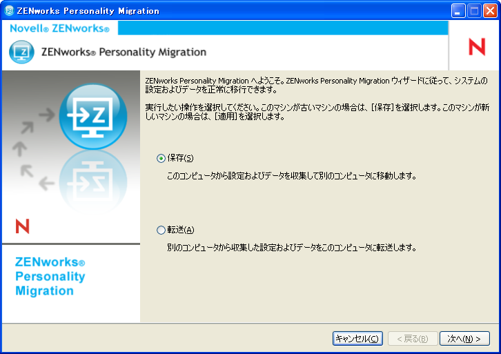 デスクトップにある[ZENworks Personality Migration]ショートカットアイコンをクリックします。