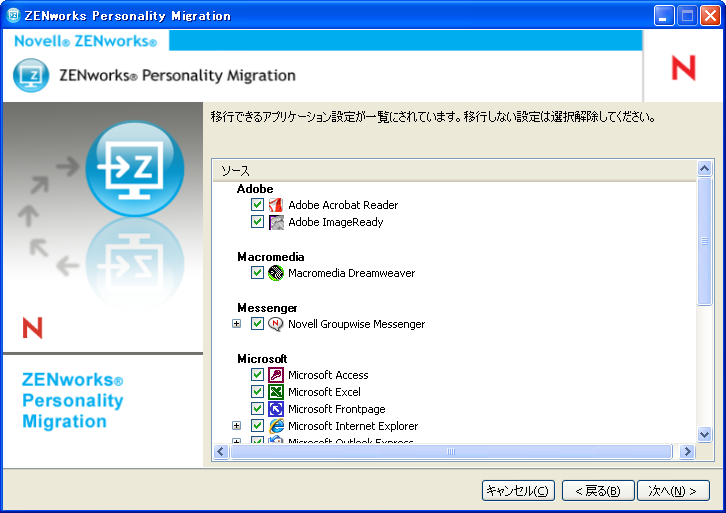 設定をマイグレートするアプリケーションを終了します。(また、ZENworks Personality Migrationを起動するときに、開いているすべてのアプリケーションを終了するよう要求されます)。