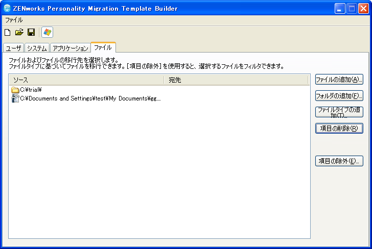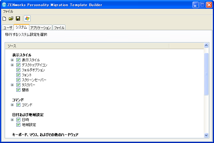 テンプレートはXMLファイルであり、任意のエディタで読み込んだり編集することができます。しかし、マイグレーションのためのカスタムテンプレートを作成する場合、ZENworks Personality Migrationでテンプレートビルダを使用すると便利であり、標準化された一貫性のあるマイグレーションを組織内で行うことができます。テンプレートは、テンプレートビルダを使用して作成できます。