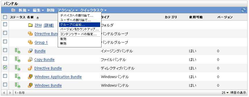 既存の任意のバンドルグループにバンドルを追加したり、割り当て処理の一部として新規のバンドルグループを作成したりできます。バンドルは、グループの割り当ておよびスケジュールを継承します。つまり、バンドルごとに個別に管理するよりも、1つのバンドルグループとして管理することによって時間を節約します。バンドルをグループに追加することは、バンドルをグループ(ユーザまたはデバイス)に割り当てることと同じことではありません。バンドルをデバイスに割り当てる詳細については、既存バンドルのデバイスへの割り当てを参照してください。バンドルをユーザに割り当てる詳細については、既存バンドルのユーザへの割り当てを参照してください。