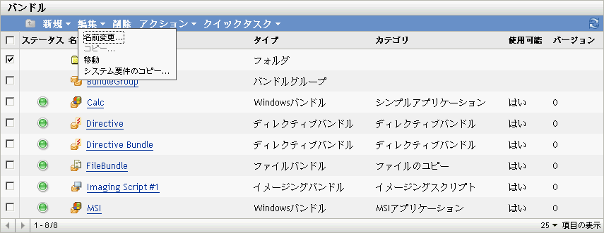 ZENworksコントロールセンターで、[バンドル]タブをクリックします。