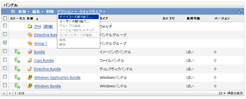 []リストで、バンドルグループ(複数可)の横のチェックボックスをオンにします。