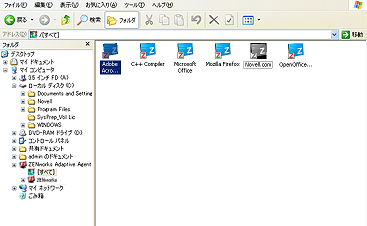 [ZENworks Explorer]は、Windows Explorer用の拡張機能であり、Windows Explorer、デスクトップ、[スタート]メニュー、[クイック起動]ツールバー、および通知領域にバンドルを表示できるようになります。