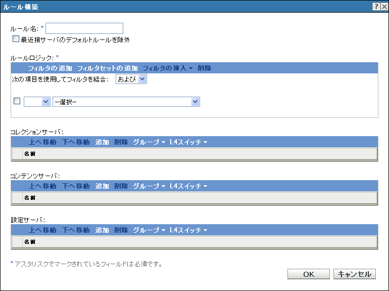 この最近接サーバのルールに一覧表示されているサーバに最近接サーバのデフォルトルールを追加しない場合、[]チェックボックスをオンにします。