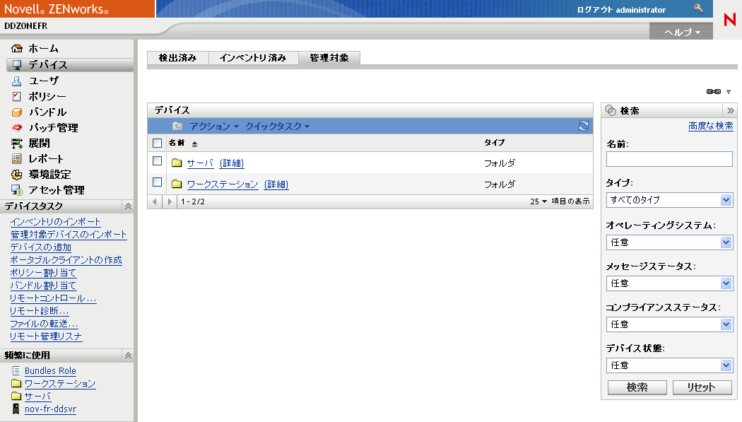 ZENworksコントロールセンターで、[]タブをクリックします。