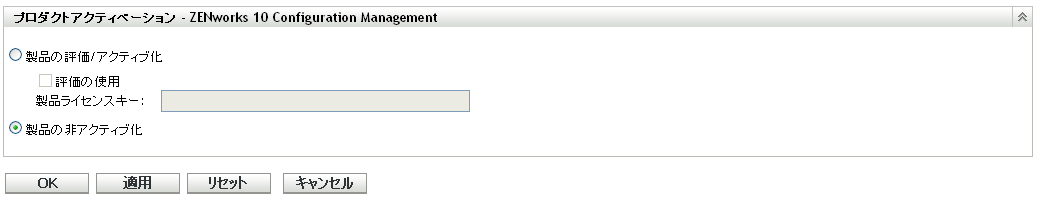 [製品の起動]パネルで、[製品の非アクティブ化]オプションを選択します。