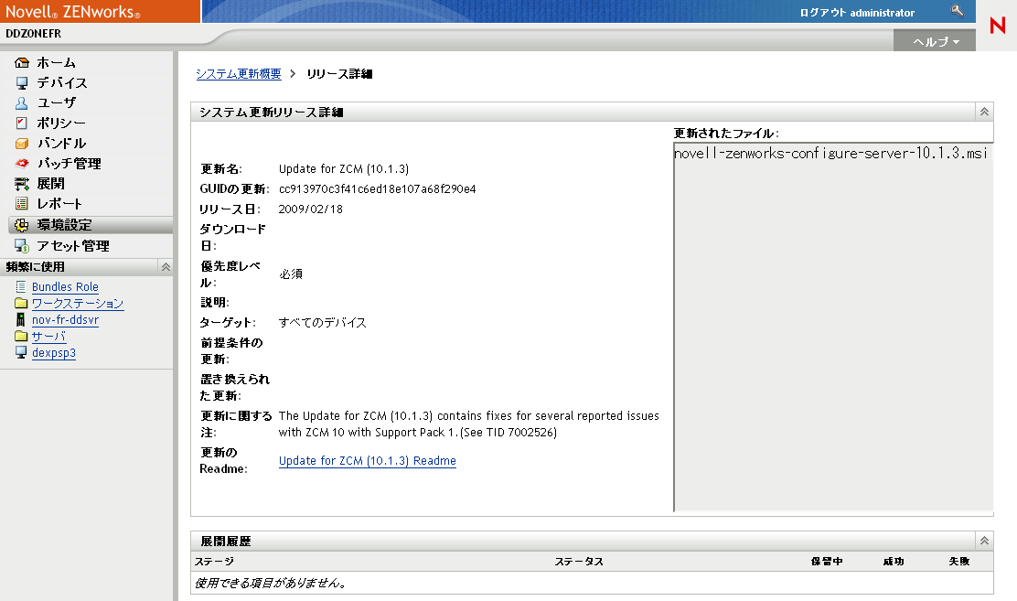 [使用可能なシステム更新]パネルで、[更新名]カラムの更新名をクリックして、[リリース詳細]ページを表示します。