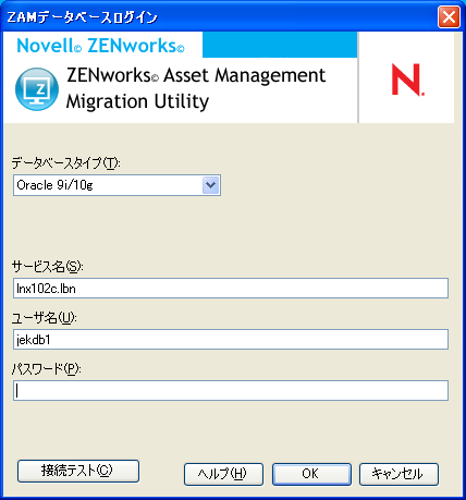 サービス名: Oracleのマイグレーションでは、サービス名を指定します。このダイアログボックスを開くたびに、最後にログインしたサービスがここに表示されます。