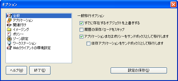 []オプションを使用すると、アプリケーションまたはポリシーをサンドボックスとして移行できます。このオプションはデフォルトで選択されています。割り当てたユーザまたはワークステーションが移行したアプリケーションまたはポリシーを使用できるようにするには、サンドボックスを発行する必要があります。