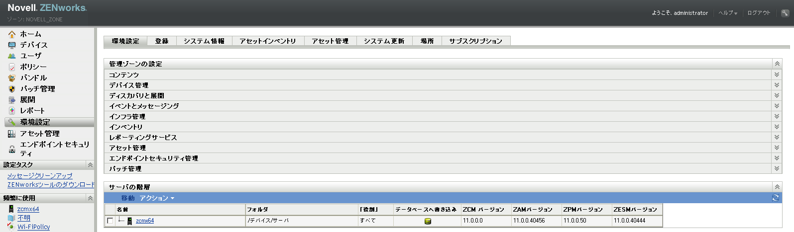 ZENworksコントロールセンターで、[]をクリックして、[環境設定]ページを表示します。