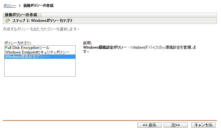 [ポリシーカテゴリの選択]ページで、[]を選択して、[]をクリックします。
