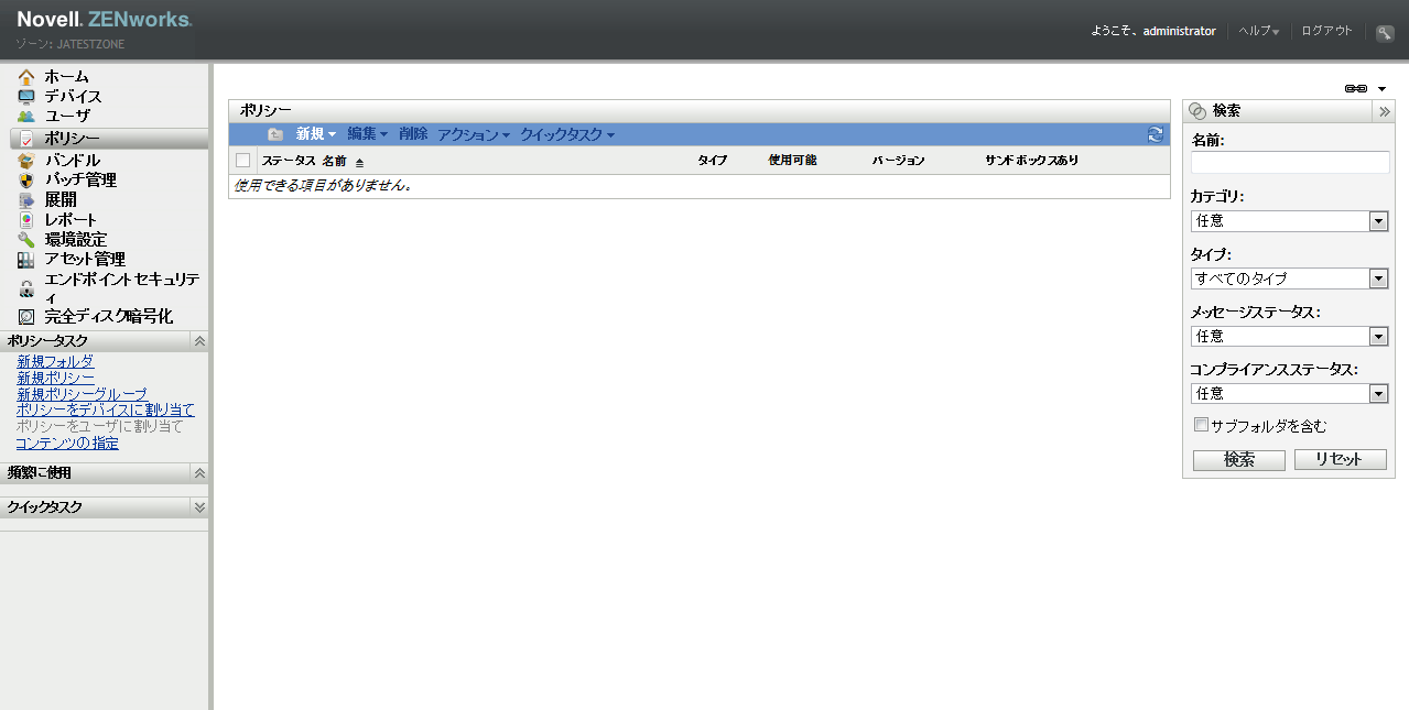 ZENworksコントロールセンターで、[]をクリックして、[ポリシー]ページを表示します。