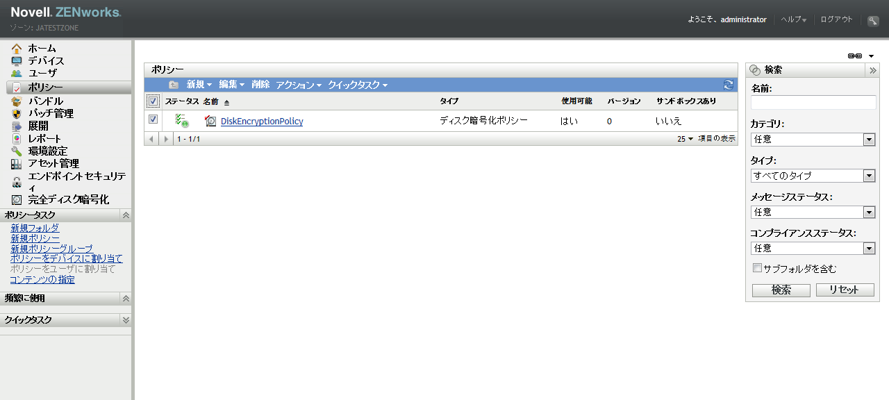 ディスク暗号化ポリシーは、デバイス専用のポリシーです。デバイスおよびデバイスフォルダに割り当てることができます。デバイスグループ、ユーザ、ユーザグループ、またはユーザフォルダに割り当てることはできません。