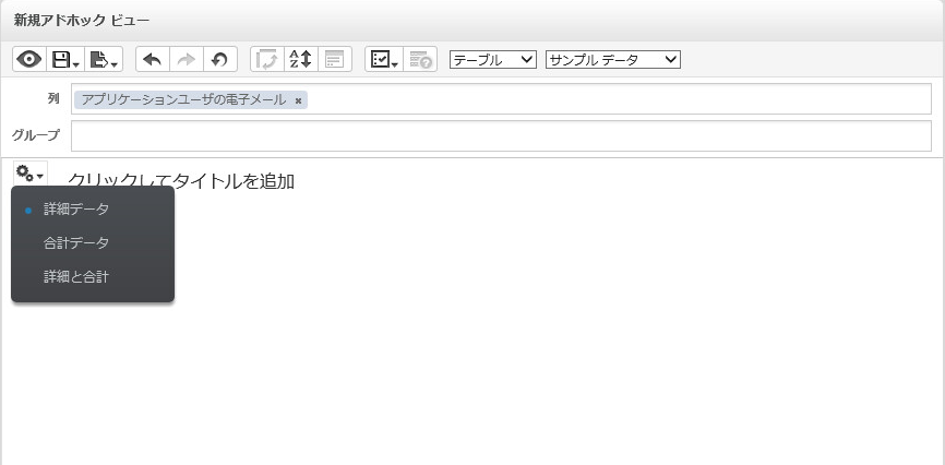 テーブルビューの場合、使用可能なフィールドは、列およびグループです。