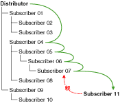 Subscriber 11に親Subscriber (Subscriber 07など)がない場合、DistributionはDistributorから直接送信されます。