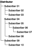 重要: 親Subscriberを利用しないSubscriberによって、Distributorの負荷と、WANリンクを介したネットワークトラフィックが増加する場合があります。DistributorからDistributionを直接受信する第1層のSubscriberを除き、すべてのSubscriberは親Subscriberに属している必要があります。