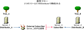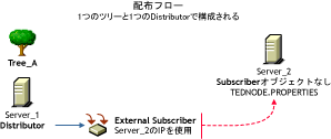DistributionをDistributor_AからServer_2に送信するには、Tree_AにExternal Subscriberオブジェクトを作成し、External SubscriberオブジェクトのプロパティにServer_2のIPアドレスまたはDNS名を指定します。