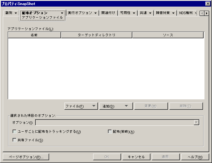 図 48-9 アプリケーションオブジェクト>[配布オプション]タブ>[アプリケーションファイル]ページ