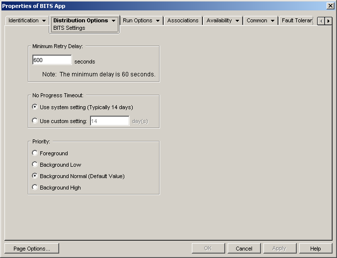 図 48-16 [アプリケーションオブジェクト]>[配布オプション]タブ>[BITS設定]ページ