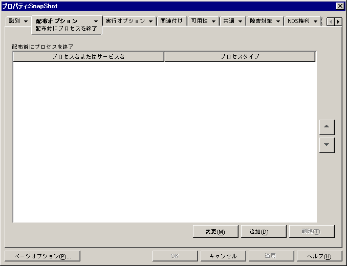 図 48-14 アプリケーションオブジェクト>[配布オプション]>[配布前にプロセスを終了]ページ