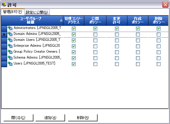 メモ:セキュリティ上の観点から、リソースユーザのみ、またはごくわずかの管理者だけにパーミッションの変更やポリシーの削除のパーミッションを付与することをお勧めします。