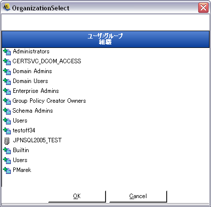 選択したユーザまたはグループを削除するには、名前を選択して、[]をクリックします。選択した名前は組織テーブルに移動されます。