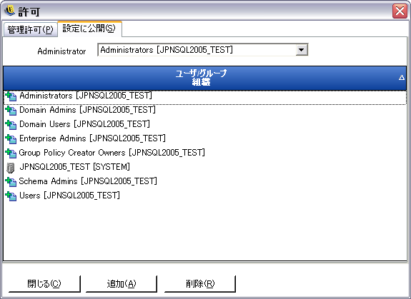 ユーザまたはグループをすべて選択したら、[]ボタンをクリックして、選択した名前の パーミッションの設定公開先リスト