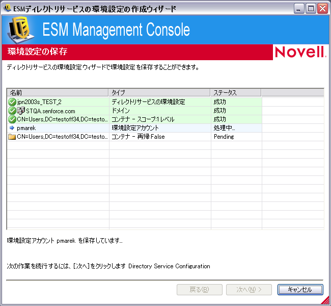 また、このウィザードでは、新しい環境設定に含めるディレクトリエントリを同期することもできます。この同期はバックグラウンドで実行されるため、直ちに新しい環境設定の使用を開始できます。