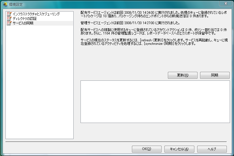 このコントロールでは、管理サービスとポリシー配布サービスを強制的に同期させます。この同期により、すべてのアラート、レポーティングおよびポリシーの配布が更新されます。