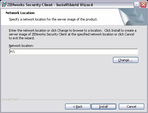 MSIイメージが作成されるネットワークのロケーションを指定するか、[Change (変更)]ボタンをクリックしてそのロケーションに移動します。