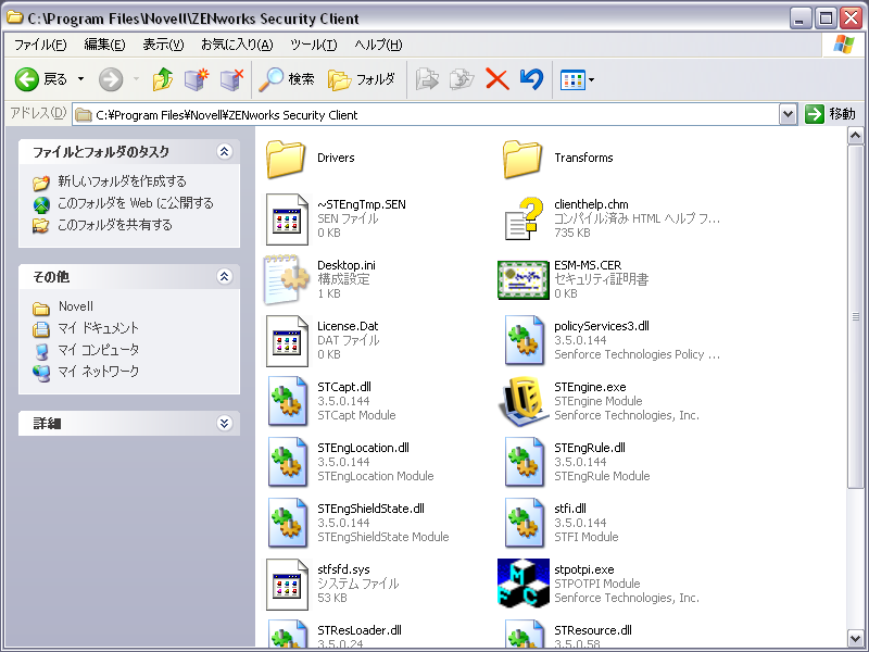 作成したMSIイメージに移動し、「\program files\Novell\ZENworks Security Client\」フォルダを開きます。