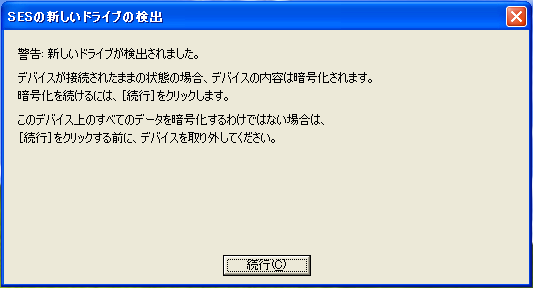 図 3-1 新規デバイス取り付け時の暗号化に関する警告