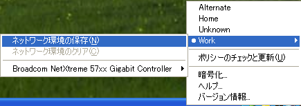 []アイコンを右クリックし、現在のロケーションにマウスを置いてサブメニューを表示します。次に、[ネットワーク環境の保存]をクリックして環境を保存します。