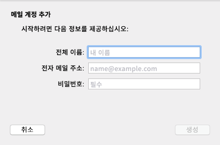 Mac Mail 앱에서 Mail > 계정 추가를 선택합니다.