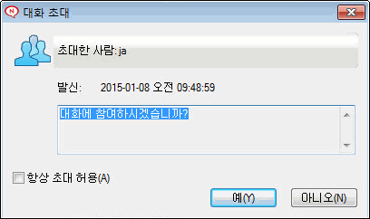 그림 2-2 [대화 초대 메시지 상자]를 받습니다.
