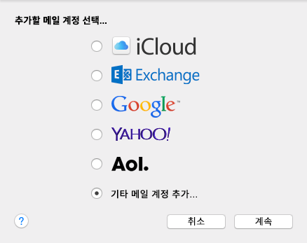 기타 Mail 계정 추가를 선택합니다.