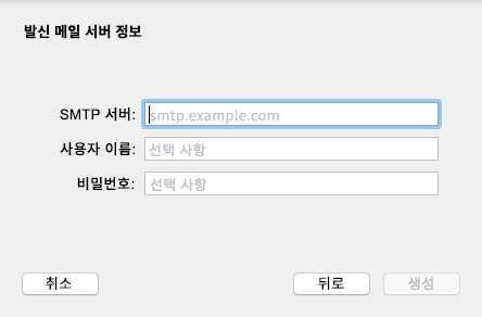 SMTP 서버, 사용자 이름 및 비밀번호를 지정합니다.