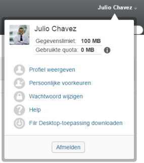 Klik op uw gebruikersnaam in de rechterbovenhoek van een Filr-pagina en klik vervolgens op Profiel weergeven.