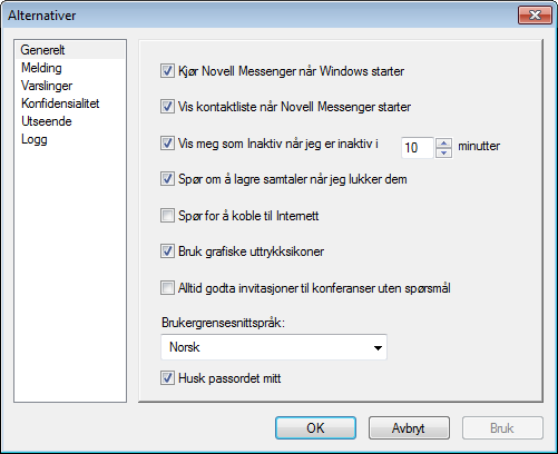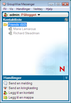 Fra Novell Messenger kan du sende en melding til kontakter som er pålogget eller inaktive.