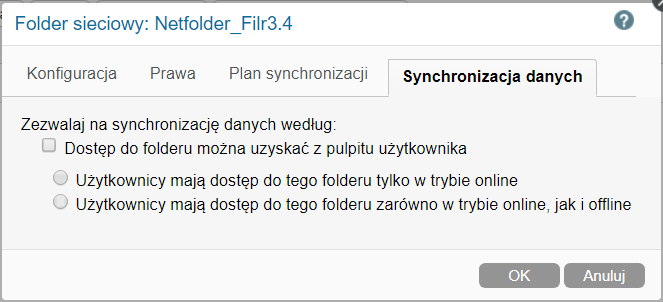 Na karcie Synchronizacja danych odznacz opcję Dostęp do folderu można uzyskać z pulpitu użytkownika.