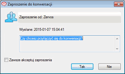Figura 2-2 Pole wiadomości Zaproszenie do konwersacji
